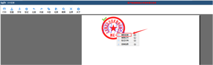 注意:若当前界面存在多个电子签章,请根据签章顺序逆向进行撤消操作,否则右击无【撤消/删除签章】按钮。