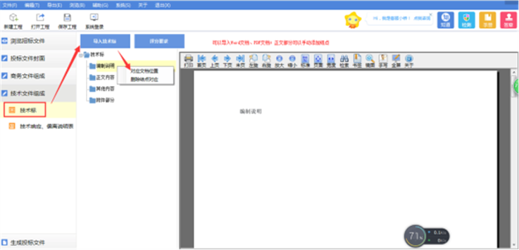 模式二:导入技术标文档后,各节点分别对应文档位置。