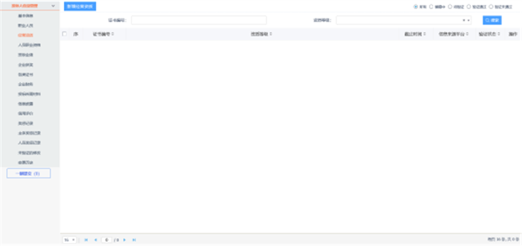 2、点击【投标人信息管理】—【职业人员】,查询是否已录入人员。如未录入人员,请录入后再进行挑选。如图: