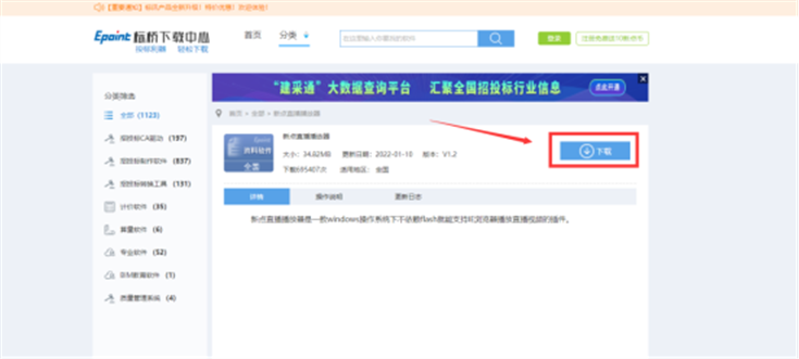 方法二、请在【标桥下载中心】页面下载新点直播播放器。如图: