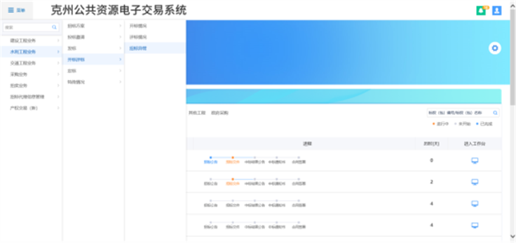 1、请登录克州电子交易平台会员端,在【我的项目】中找到对应项目,点击【项目流程】,进入项目流程页面。如图: