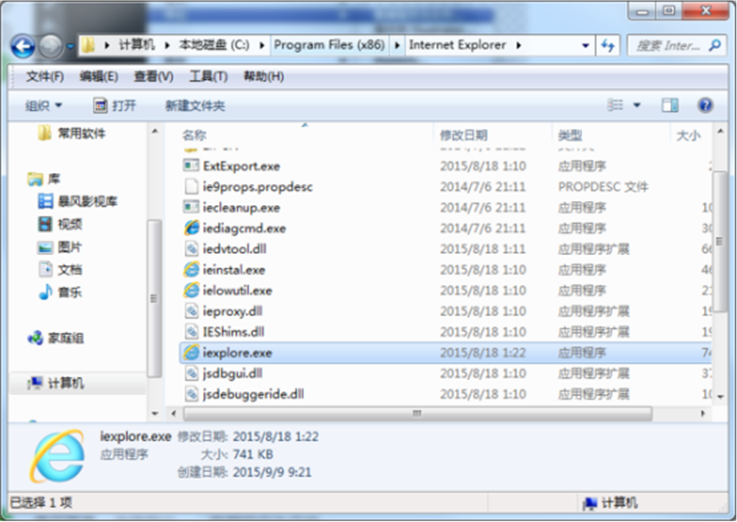 首先,打开计算机,依次打开C:\Program Files (x86)\Internet Explorer文件夹;然后,双击【iexplore.exe】即可使用32位IE进行浏览。