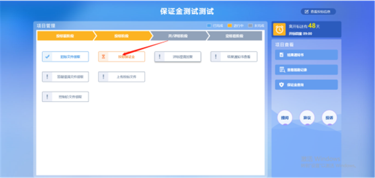 2、进入项目管理页面,点击【投标保证金】按钮。如图: