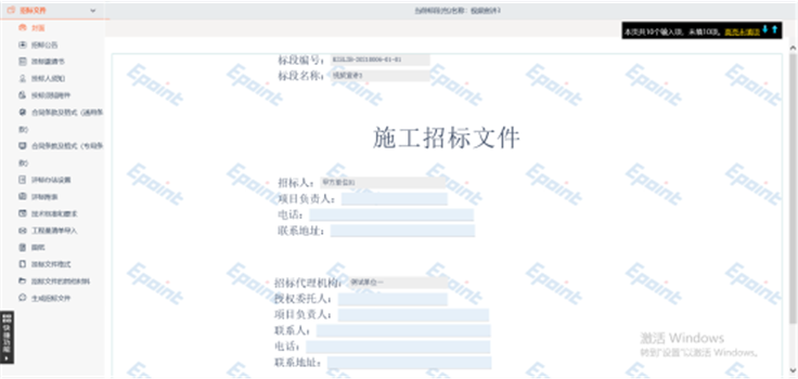 第五步、将另存好的PDF文件重新导入软件中,再进行预览标书。