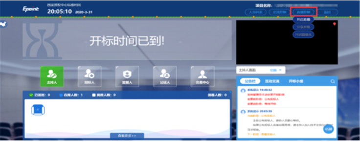 1、招标代理:需提前根据“不见面开标大厅操作手册(主持人版)”按照要求准备电脑环境,包括摄像头和麦克风功能,进入不见面开标系统,页面菜单栏【直播控制】依次点击开启直播,开启摄像头,如遇卡顿请刷新浏览器。如图:
