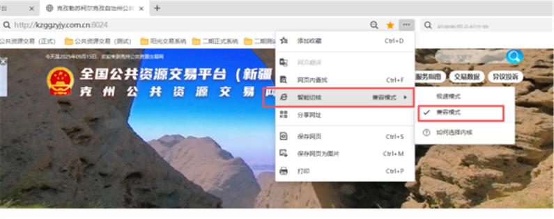 3.使用360极速浏览器,打开网站后,切换到兼容模式。