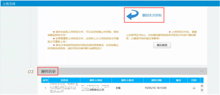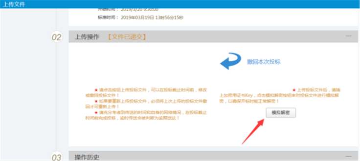 上传投标文件后,在【上传投标文件】界面点击【模拟解密】按钮。