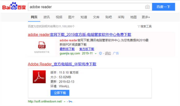 第一步、百度搜索关键字“Adobe Reader”;