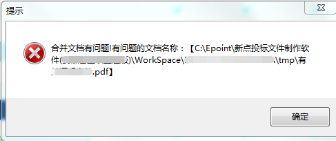 问题10:投标文件编制过程中,点击预览标书提示“合并文档有问题!有问题的文档名称:【...\WorkSpace\...\tmp\...pdf】”?