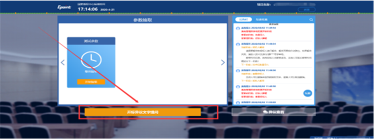 1、投标人可在开标页面点击【开标异议文字提问】按钮发起提问申请。如图: